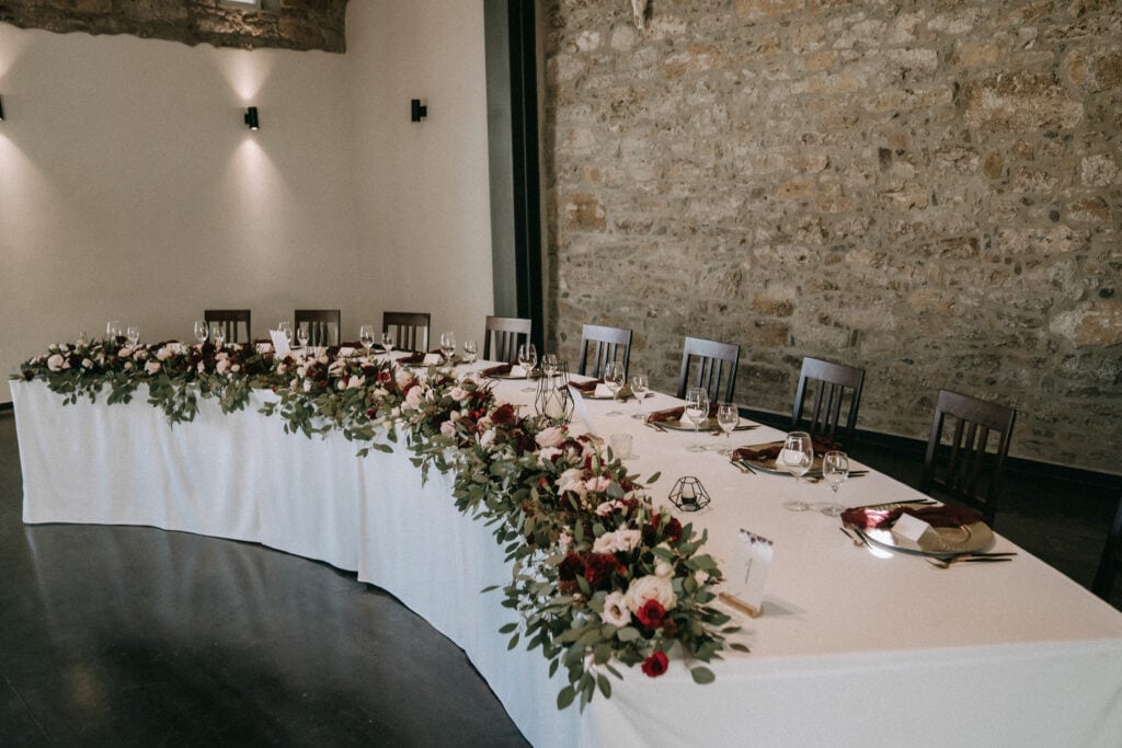 Zauberhafte Blumengirlande für den Brauttisch