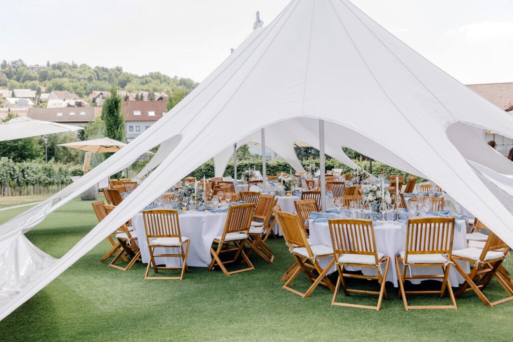 Hochzeit im Par­tyzelt auf dem Weingut Bihlmay­er