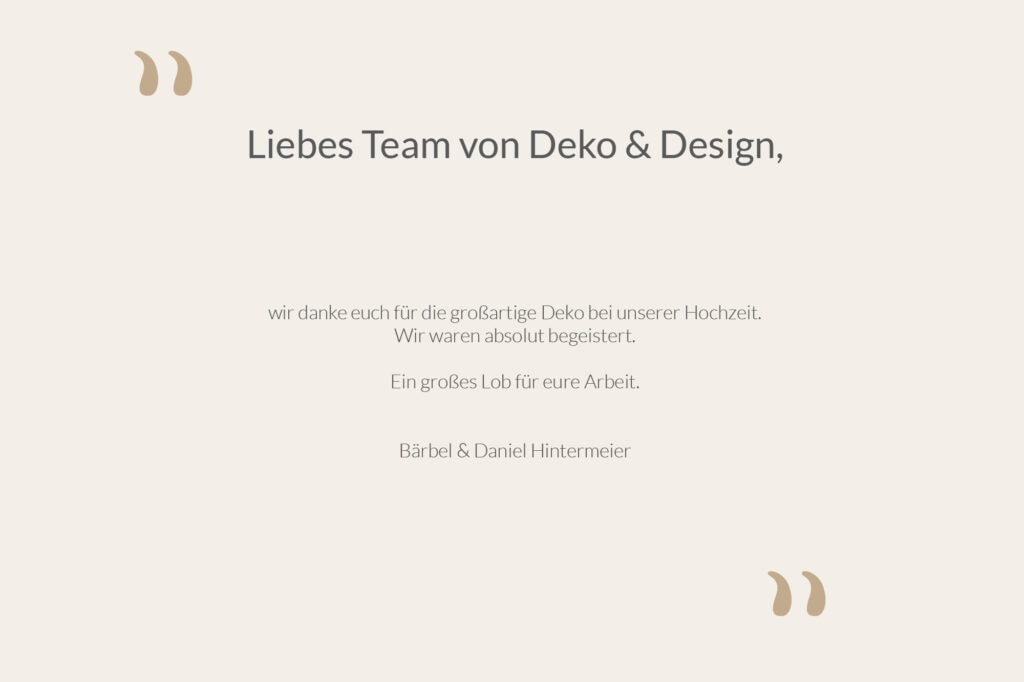 Weit­ere Deko-Ideen für Hochzeit­en gibt es in unser­er Galerie für Hochzeit­en und zum generellen Ablauf der Deko zur Hochzeit.