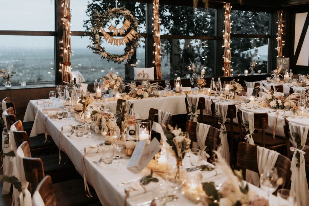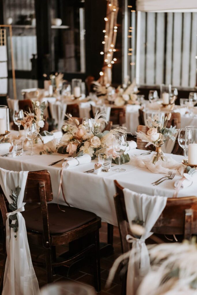 Weit­ere Deko-Ideen für Hochzeit­en gibt es in unser­er Galerie für Hochzeit­en und zum generellen Ablauf der Deko zur Hochzeit.