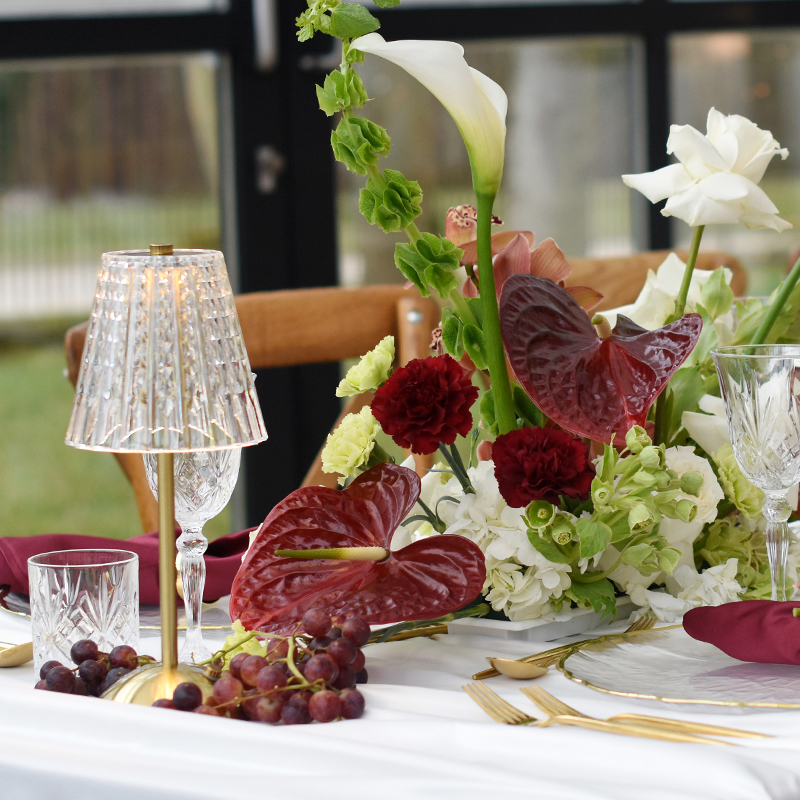 LED Tischlampe | Tischleuchte gold | Lampenschirm Kristalloptik | warm weiss [mieten]