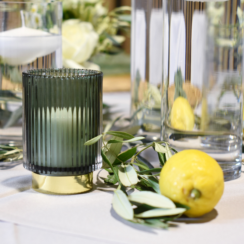 Vase Rille, Glas grün mit Goldfuß [mieten]