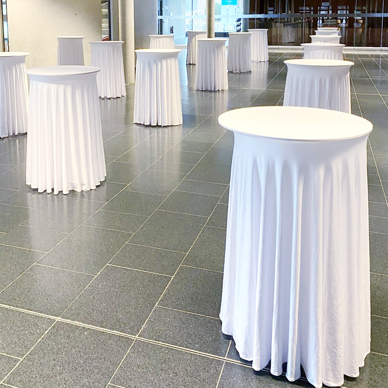 Stehtischhusse Stretch modern | fließend fallend | weiss [mieten]