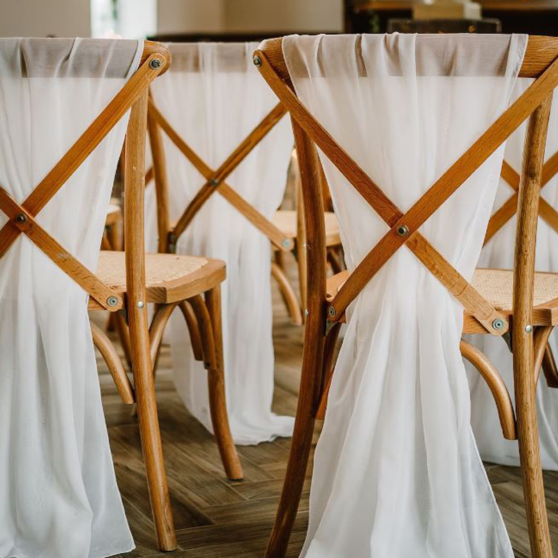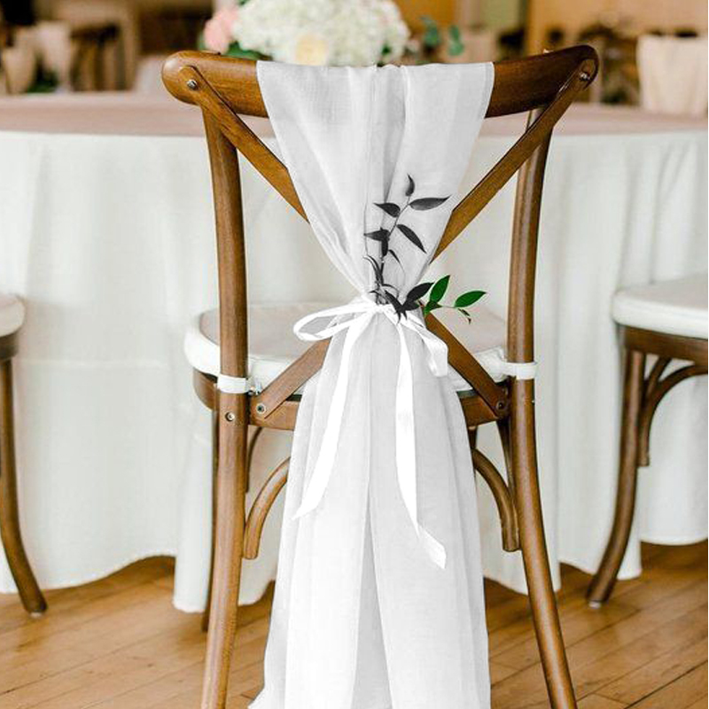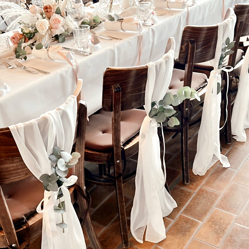 Stuhlband | Stuhltuch | Stuhlschleife Chiffon weiss mit Satinband weiss zum Binden [mieten]