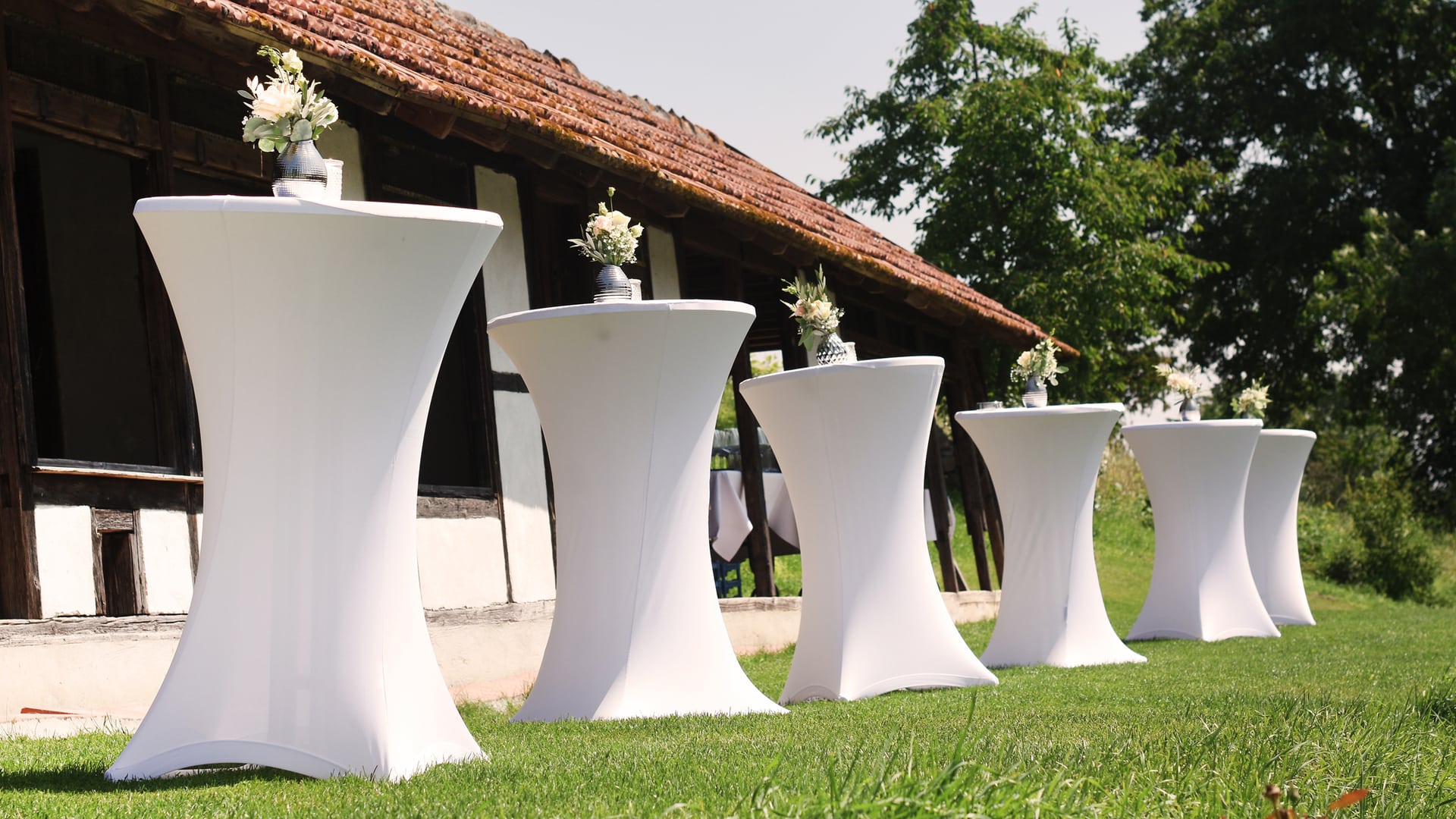 Stehtischhussen mieten für Hochzeit und Gartenparty